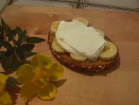mit Erdnussbutter, Bananenscheiben, abgeschmeckt mit Gebirgsblütenhonig